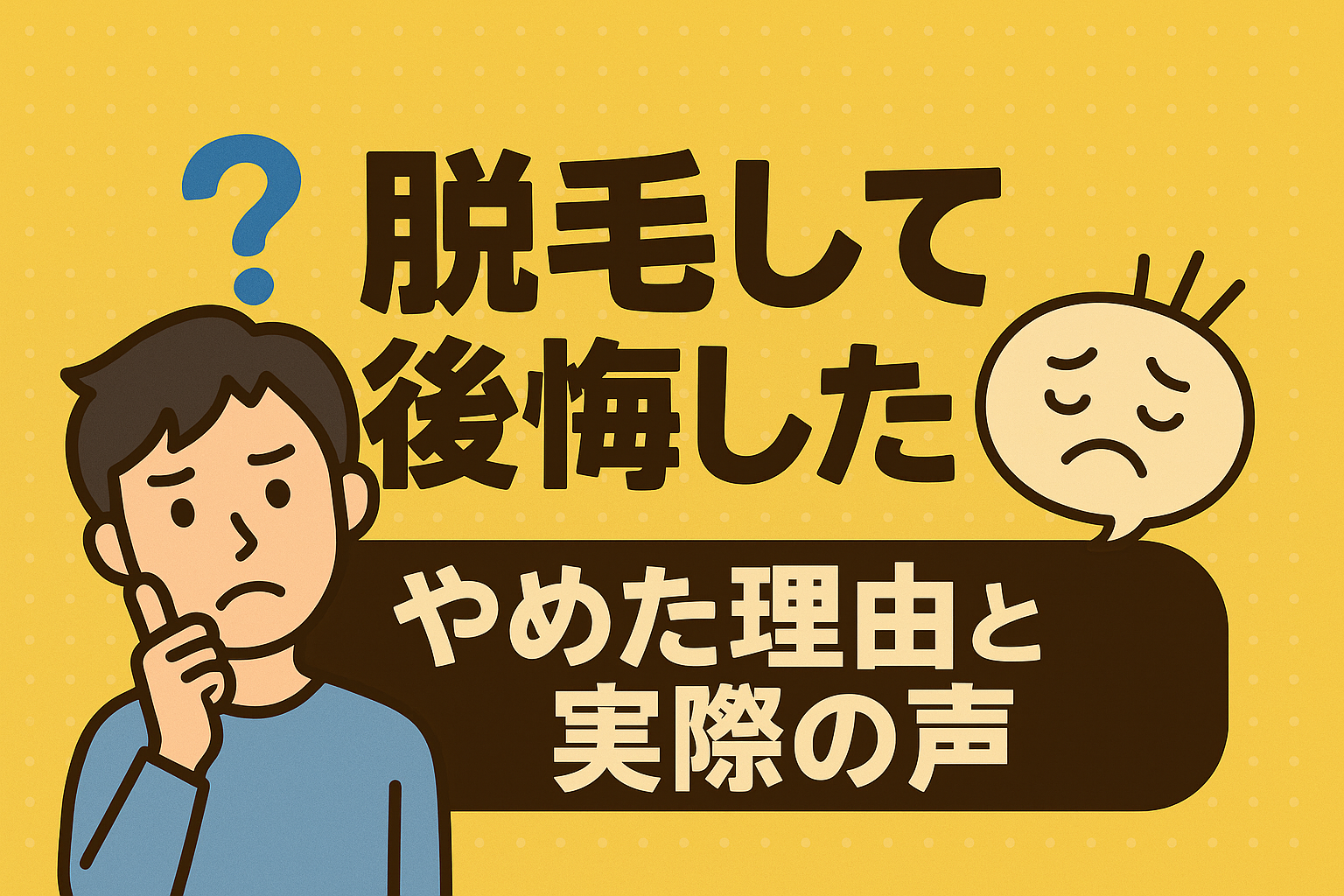 メンズ脱毛で後悔する人の多くは、以下の五つのパターンのいずれかに該当する。それぞれの原因と対策を整理する。