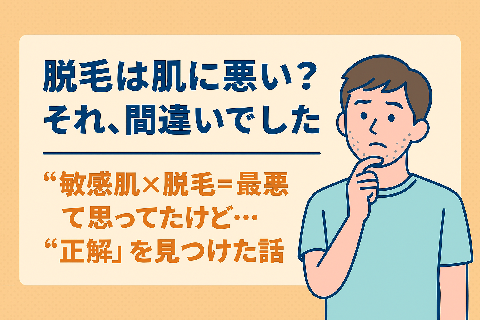 脱毛は肌に悪い?それ、間違いでした 僕はずっと「敏感肌の男が脱毛なんて、肌が荒れて地獄を見るに決まってる」と思い込んでいました。実際、中学時代からカミソリ負けによる赤みとヒリつきに悩まされ続け、大人になってもヒゲ剃りのたびに肌がピリピリして化粧水すら染みる日々。 そんな自分が「脱毛」なんてしたら、肌が爆発するんじゃないかとさえ思ってました。でも——結論から言えば、敏感肌でも、正しい方法を選べば脱毛 […]
