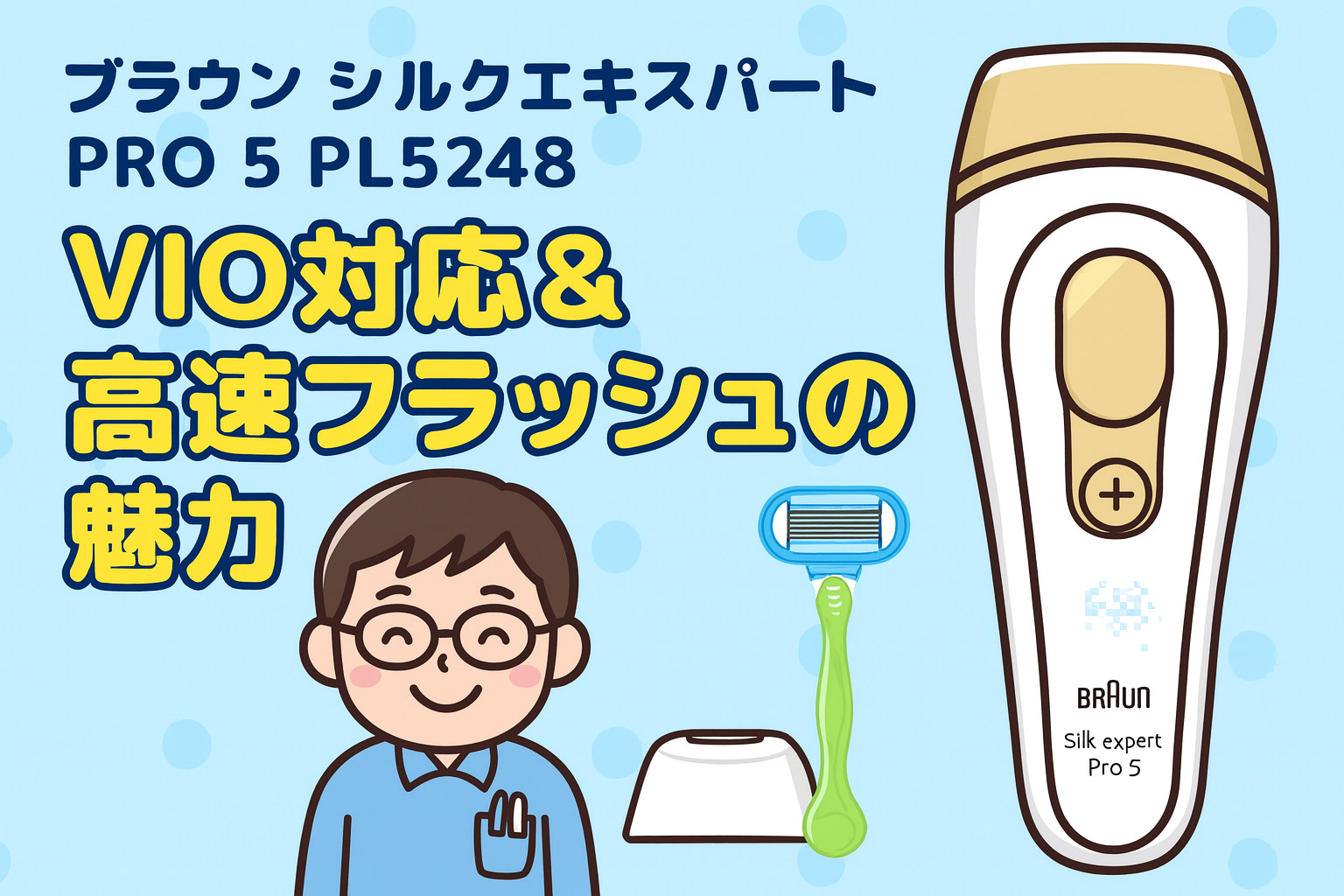 ブラウン シルクエキスパート Pro 5 PL5248|VIO対応&高速フラッシュの魅力 製品概要 ブラウン「シルクエキスパート Pro 5 PL5248」は、医療機関テスト済みのIPL(Intense Pulsed Light)方式を採用した家庭用光美容器です。IPLとは、広帯域の光を肌に照射し、毛の黒色(メラニン色素)に反応させて毛根へ熱ダメージを与える仕組み。サロンやクリニックでも用いられる […]