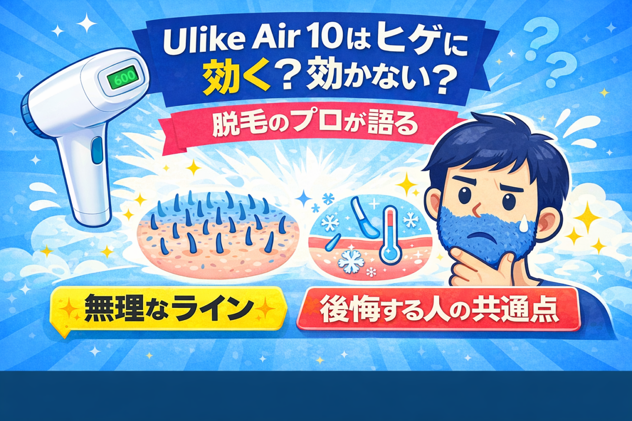 Air 10は本体価格が約5〜7万円(セール時で3〜4万円台のこともある)。医療脱毛のヒゲ脱毛は、5〜10回コースで10〜20万円が相場だ。単純な金額だけ見ればAir 10が圧倒的に安い。ただし、Air 10はヒゲ以外にも全身に使えるので、ヒゲ「だけ」のコスパで比較するのは少し不公平ではある。