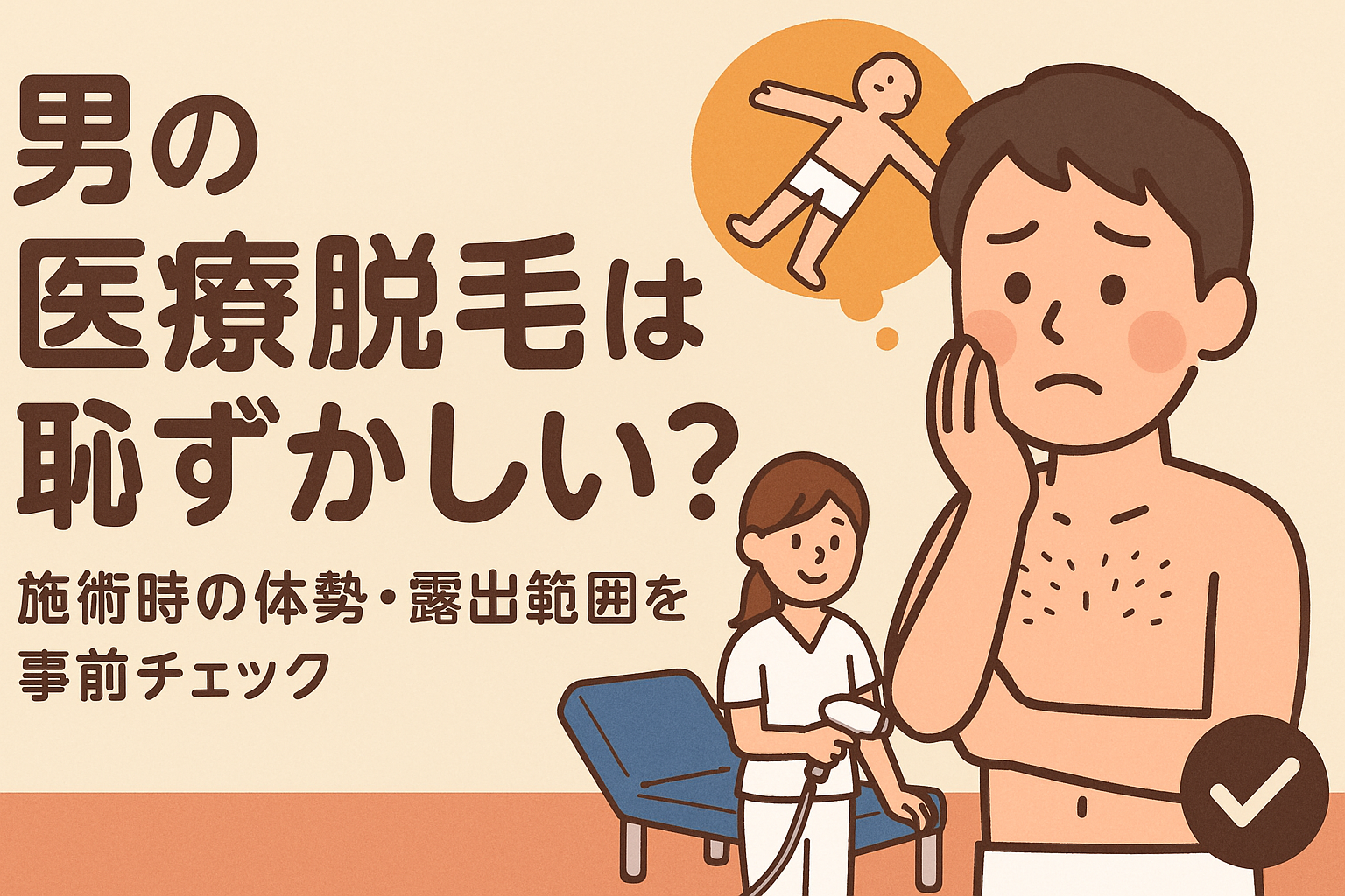 男の医療脱毛は恥ずかしい?施術時の体勢・露出範囲を事前チェック